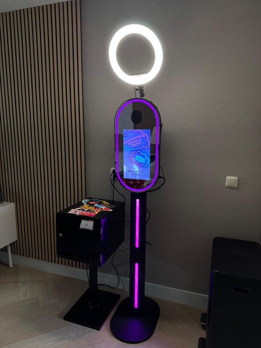 Onze fotobooth werkt volledig automatisch. Er is geen host nodig. We plaatsen en testen alles vooraf, zodat jij alleen nog hoeft te genieten van het feest!