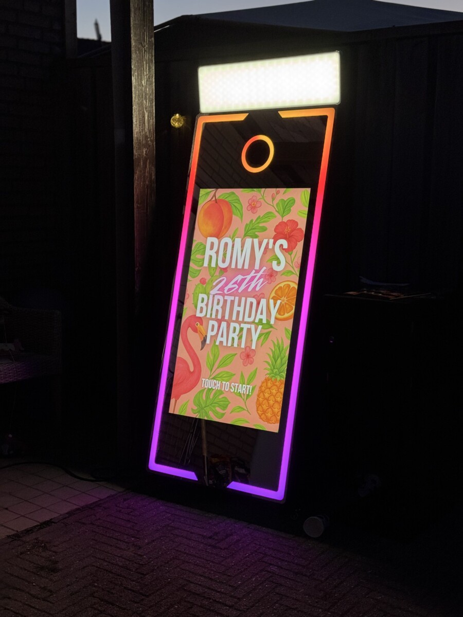 ![Magic mirror photobooth met LED lijst [Den Haag] - Afbeelding 6](https://photobooths-huren.nl/wp-content/uploads/2023/11/Magic-mirror-photobooth-feest-scaled.jpg)